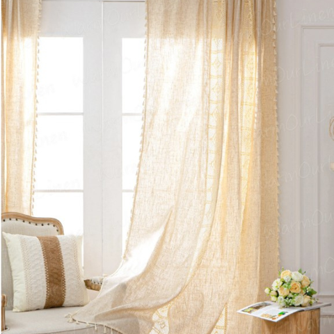 Cortina de lujo para ventana y puerta, tela de algodón, cortina de gasa de lino transparente para sala de estar, cama, decoración de habitación, venta al por mayor hecha a mano